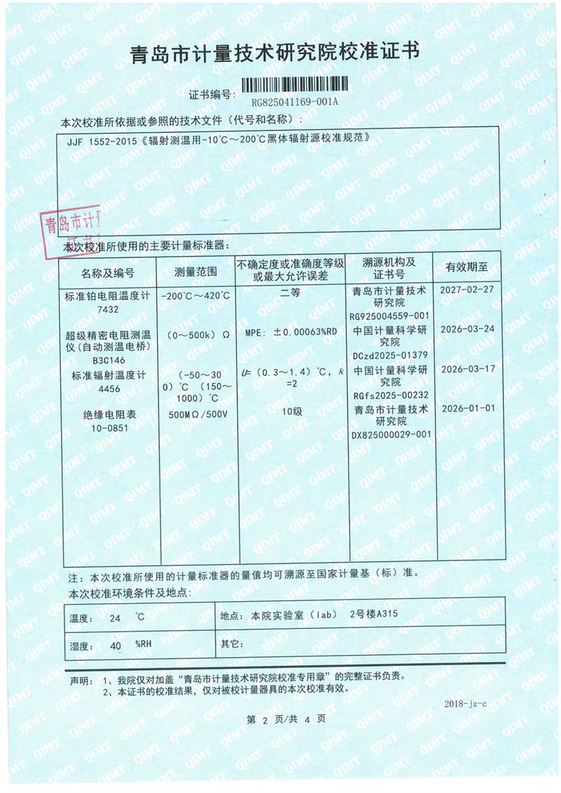 額溫計(jì)黑體空腔校準(zhǔn)證書 2025-11-5 本文被閱讀 84 次