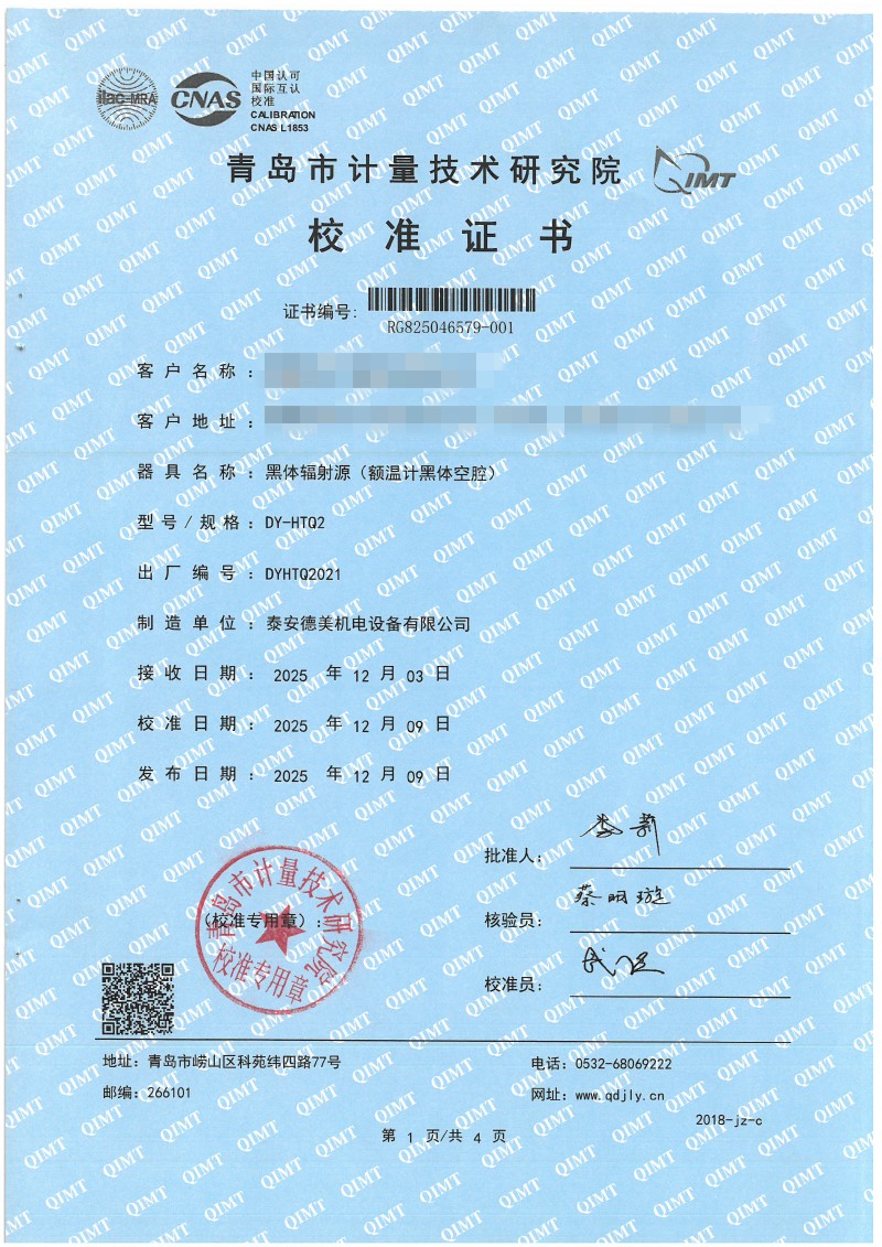 額溫計(jì)黑體空腔校準(zhǔn)證書 2025-12-18 本文被閱讀 89 次