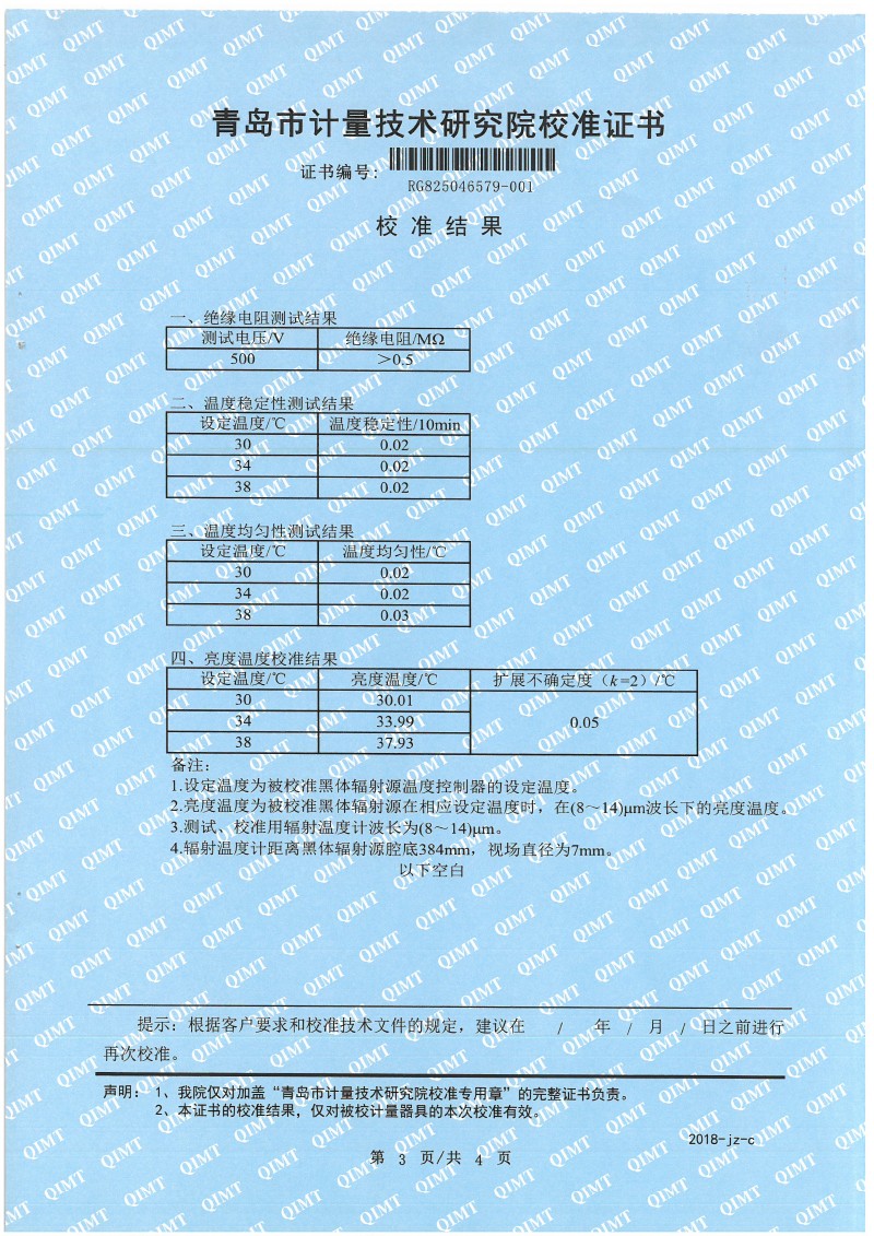 額溫計(jì)黑體空腔校準(zhǔn)證書