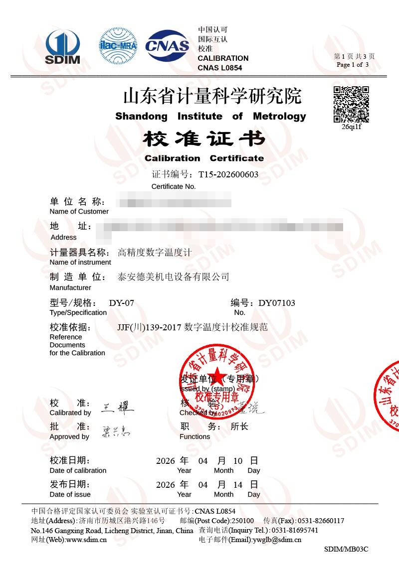 高精度數(shù)字溫度計(jì)-校準(zhǔn)證書 2026-4-14 本文被閱讀 77 次