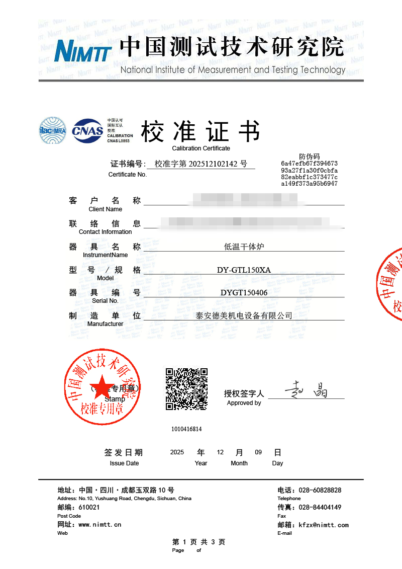 低溫干體爐校準(zhǔn)證書 2025-12-11 本文被閱讀 135 次