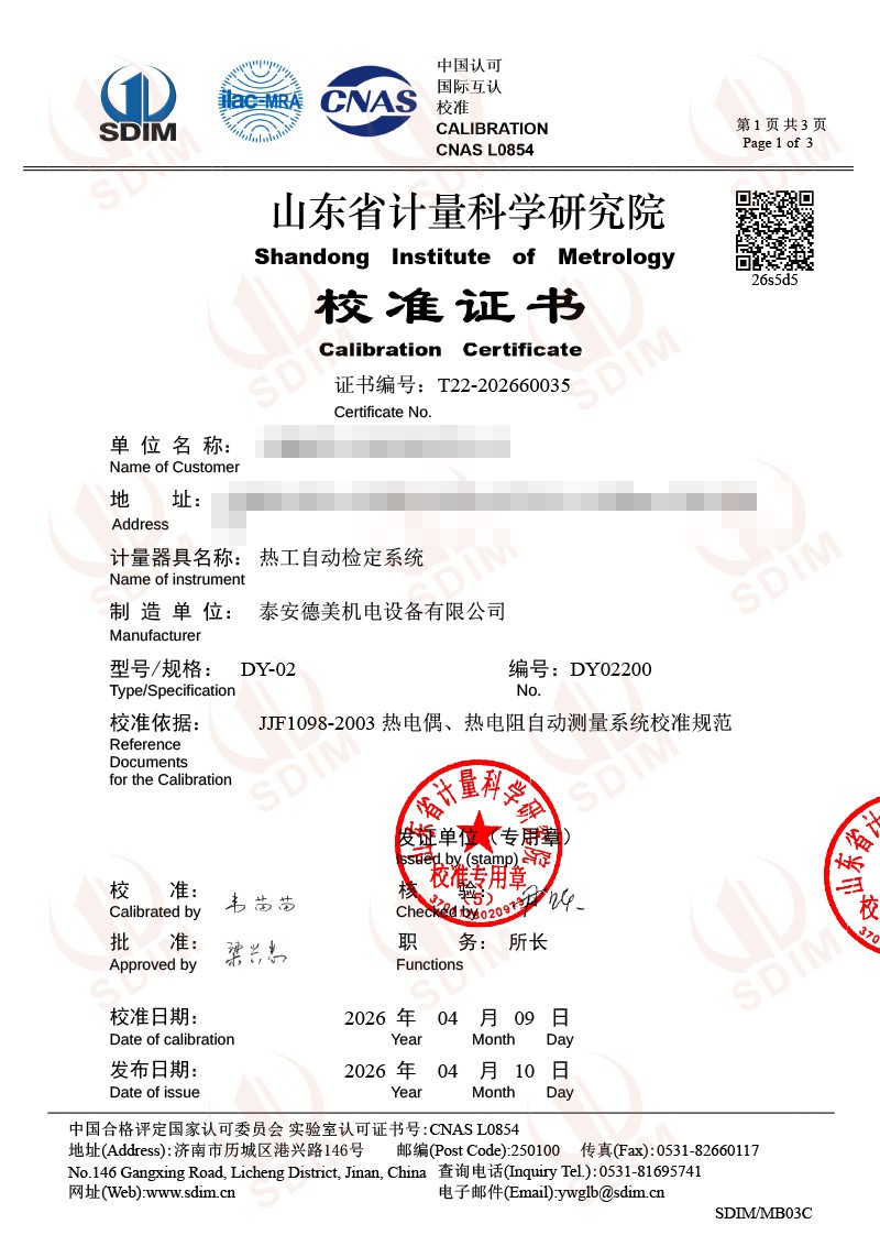 熱工自動(dòng)檢定系統(tǒng)-校準(zhǔn)證書 2026-4-11 本文被閱讀 63 次