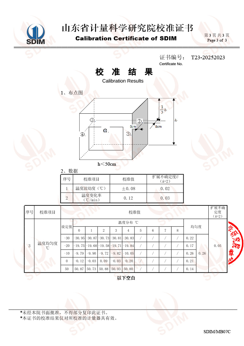 便攜溫度檢定箱(-30℃~50℃)校準證書