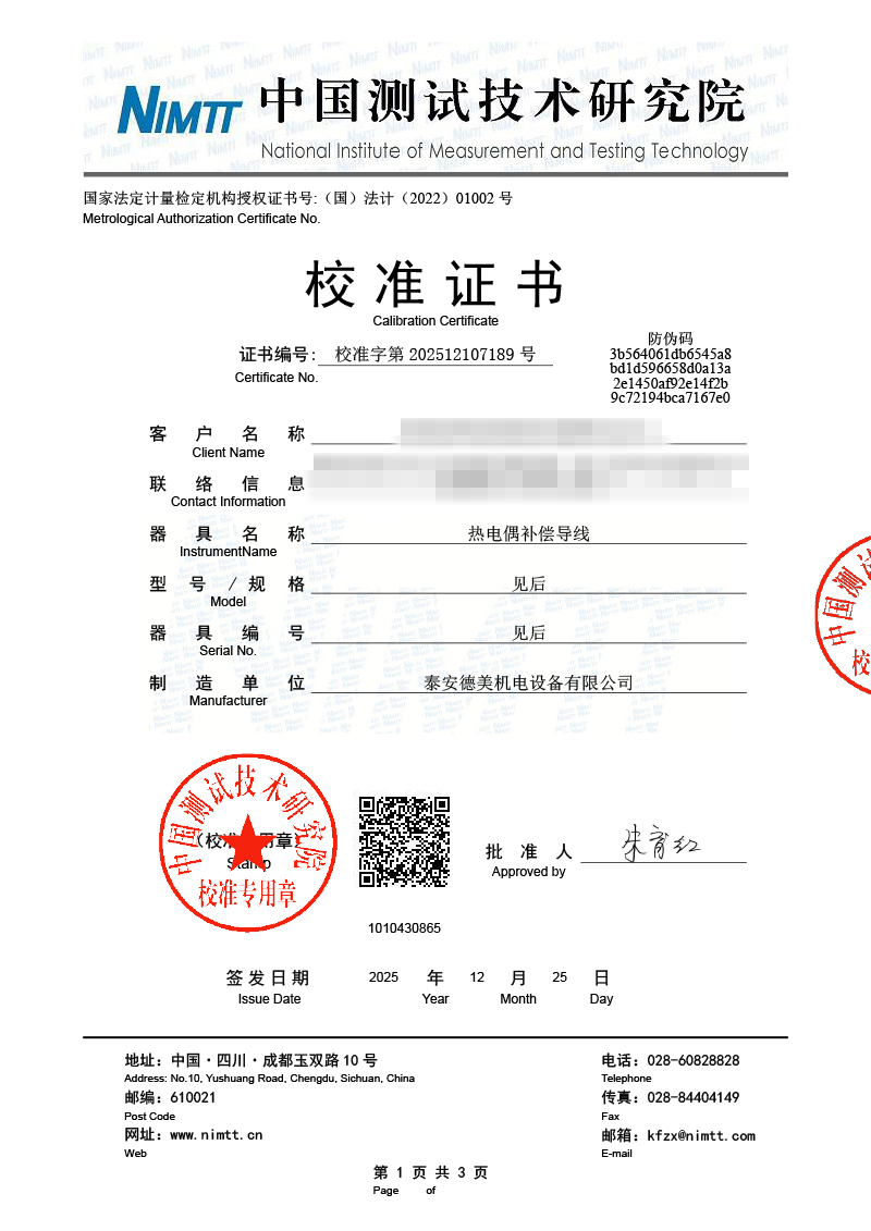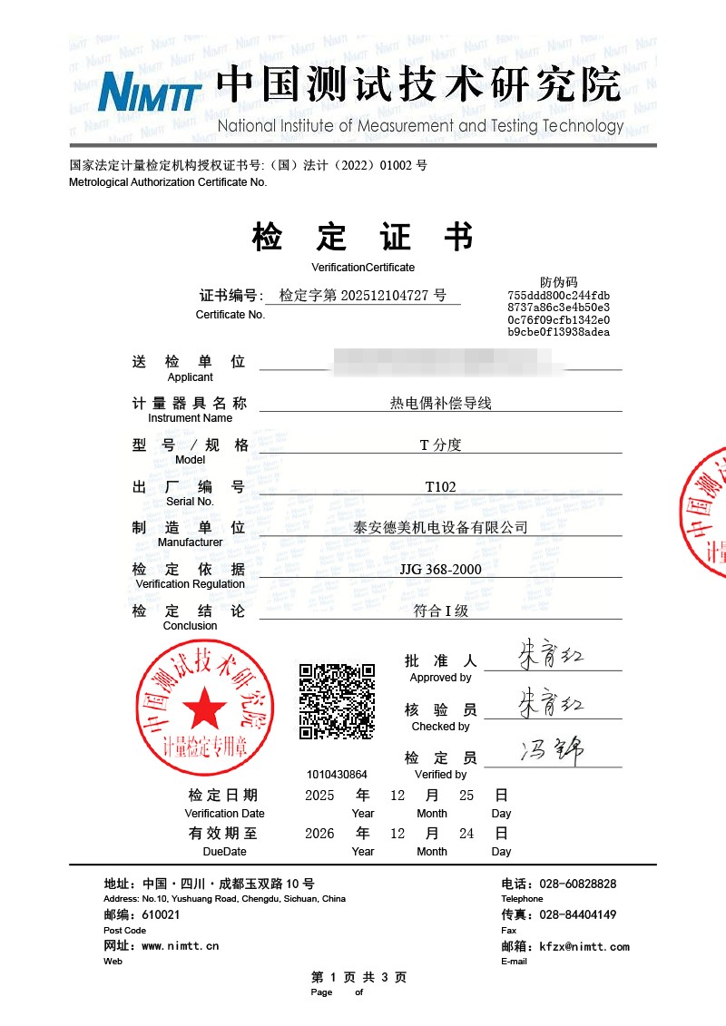 | 上一條:標(biāo)準(zhǔn)水銀溫度計檢定證書 | 下一條:露點儀校準(zhǔn)系統(tǒng)校準(zhǔn)證書 |