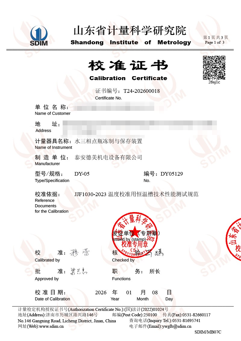 水三相點(diǎn)瓶?jī)鲋婆c保存裝置校準(zhǔn)證書(shū) 2026-1-13 本文被閱讀 62 次