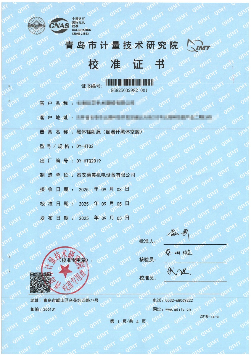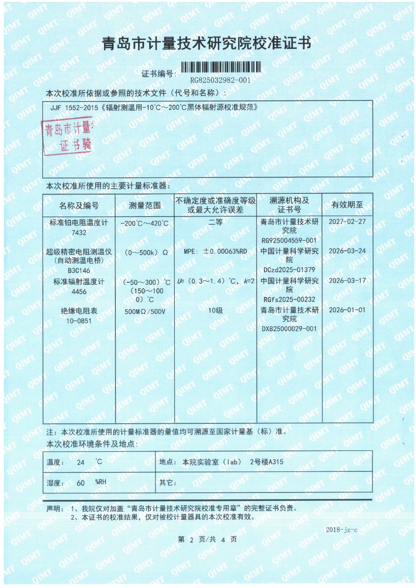 額溫計黑體空腔-校準證書 2025-9-23 本文被閱讀 1092 次