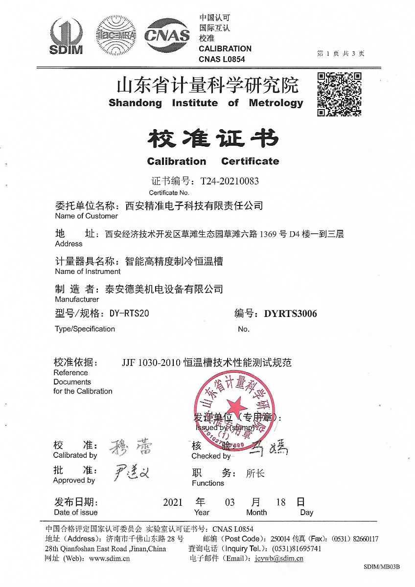 | 上一條:西安電子科技有限責(zé)任公司-智能高精度恒溫油槽 | 下一條:冷鏡式露點(diǎn)儀校準(zhǔn)證書(shū) |