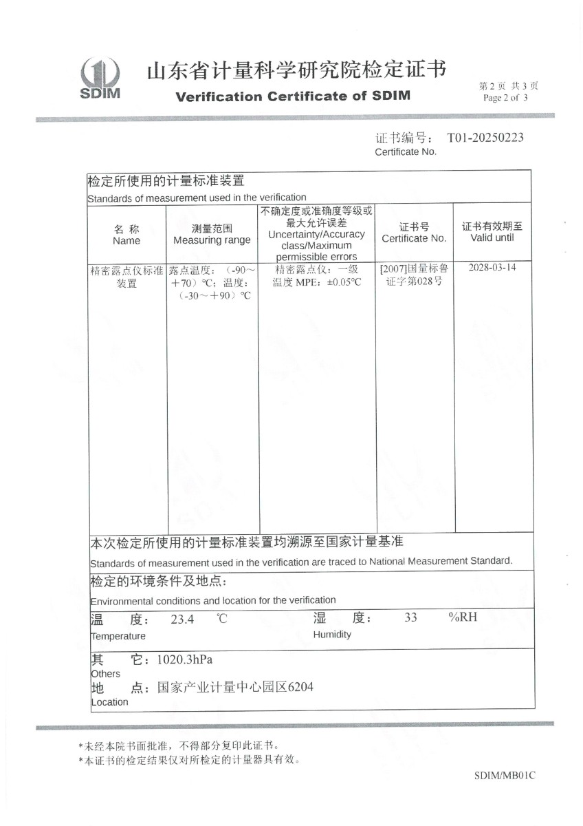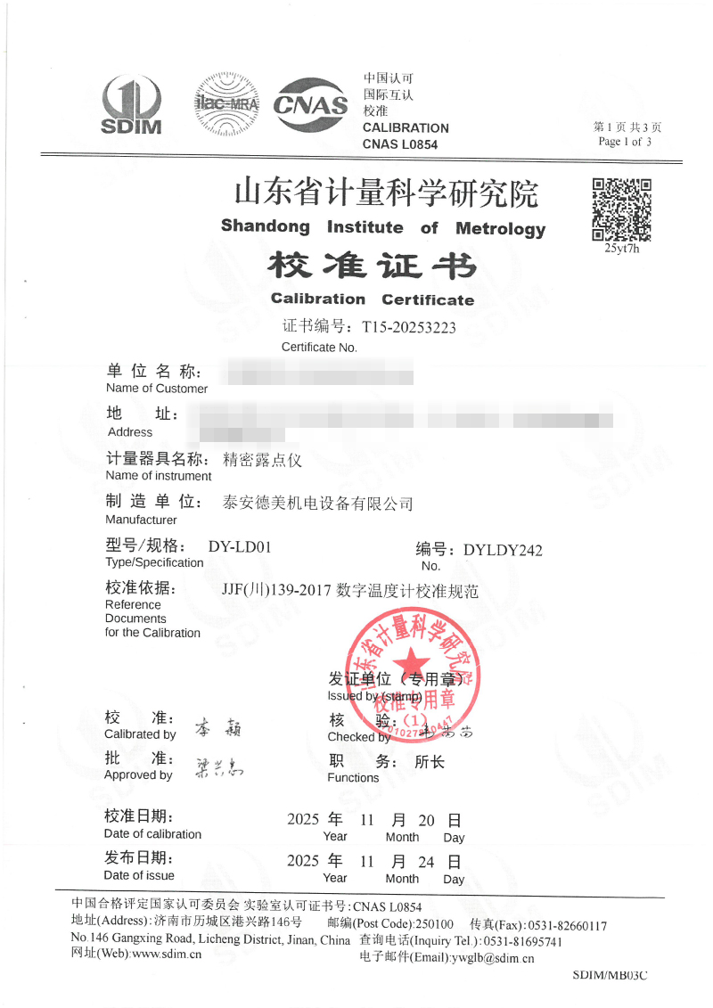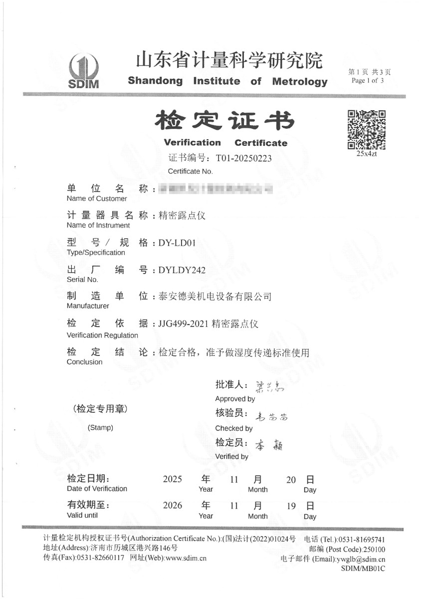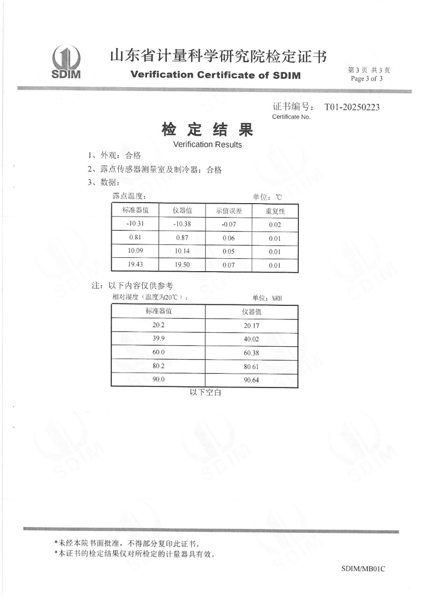 露點儀檢定、校準證書 2025-12-4 本文被閱讀 1 次